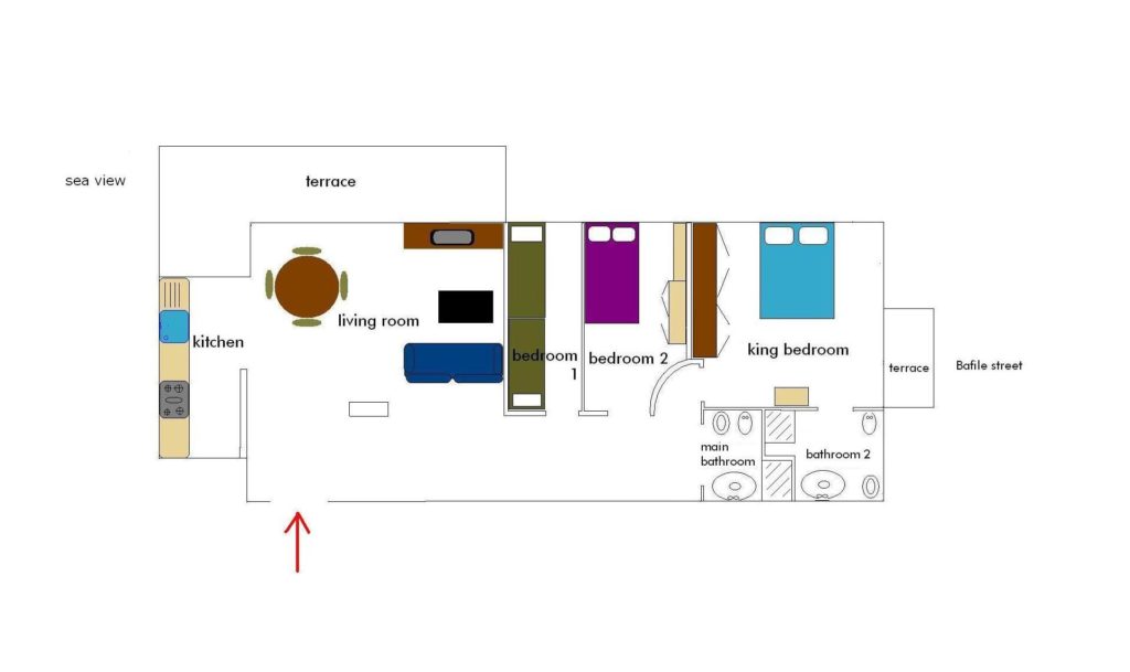 Sehr geräumige Wohnung mit modernen Möbeln im 3. Stock eines in unmittelbarer Nähe zum Meer (30 m) gelegenen Gebäudes mit Aufzug.Es bietet insgesamt 8 Betten, die auf 3 Schlafzimmer sowie einer Schlafcouch im Wohnzimmer verteilt sind, 2 Badezimmer mit Dusche, Klimaanlage, LCD-Fernseher, Privatparkplatz, voll ausgestattete Küche, Waschmaschine und Spülmaschine.